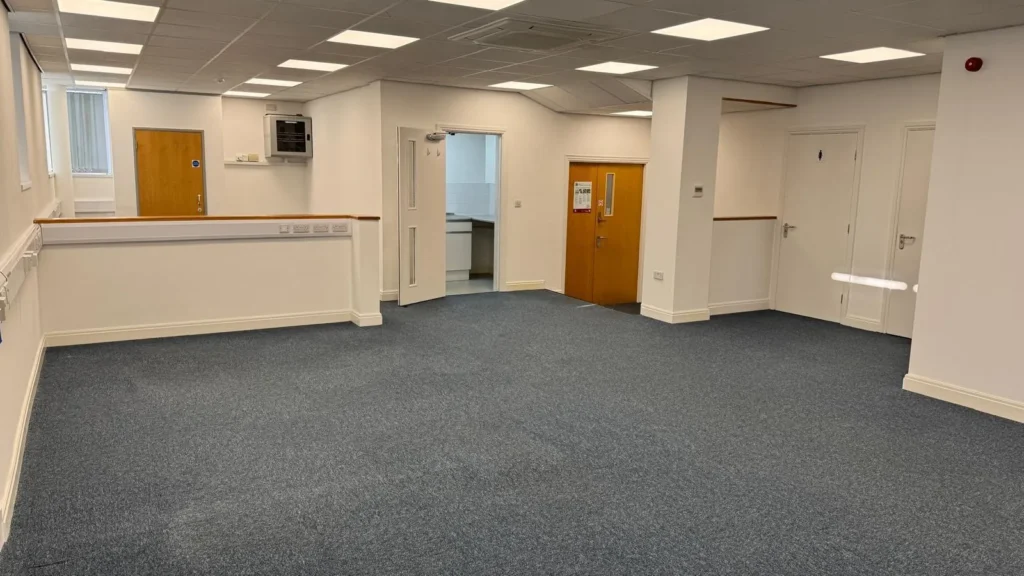 Internally, the office comprises a central open plan office, with two private offices or meetings rooms off this space. The suite also benefits from its own kitchen and WC.